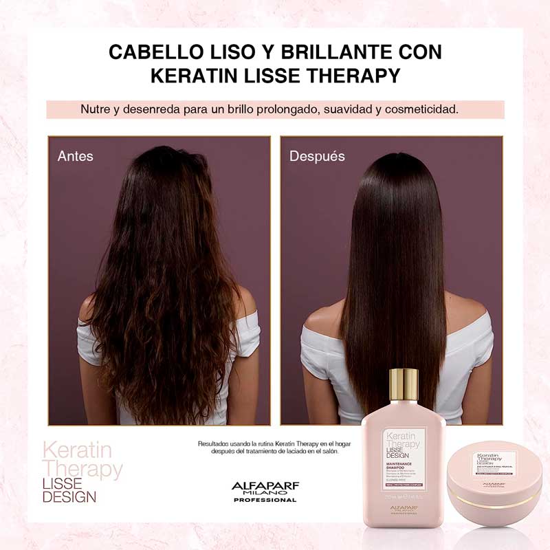 Alfaparf Keratin Therapy Lisse Desing Máscara Rehidratante específica post servicio alisado.